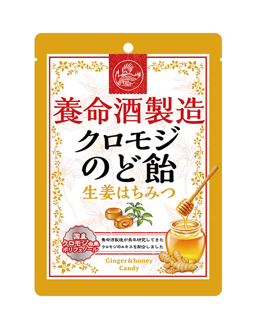 - 水飴(国内製造)、砂糖、還元澱粉糖化物、食用油脂、クロモジエキス末、はちみつ、しょうが粉末、黒蜜/甘味料(ソルビトール)、乳化剤、香料、香辛料抽出物
